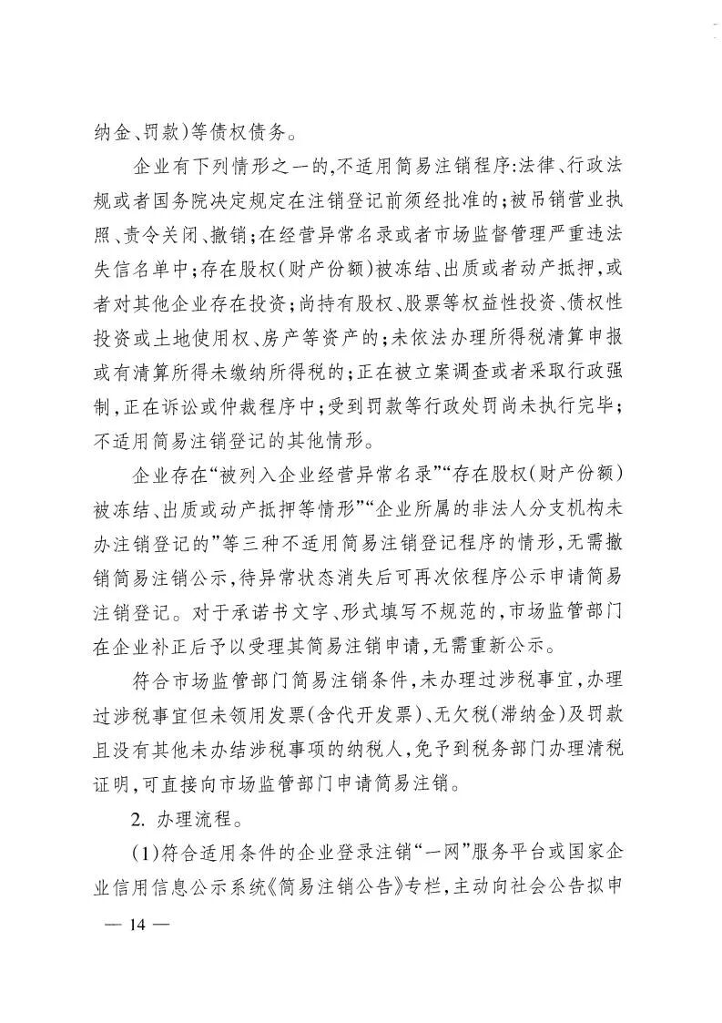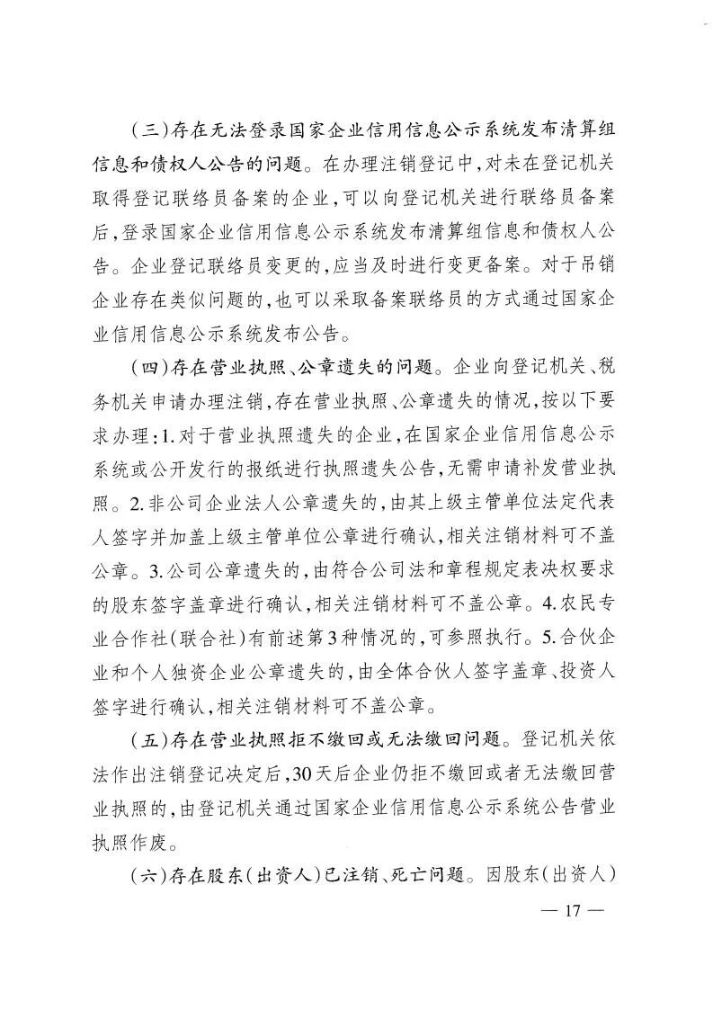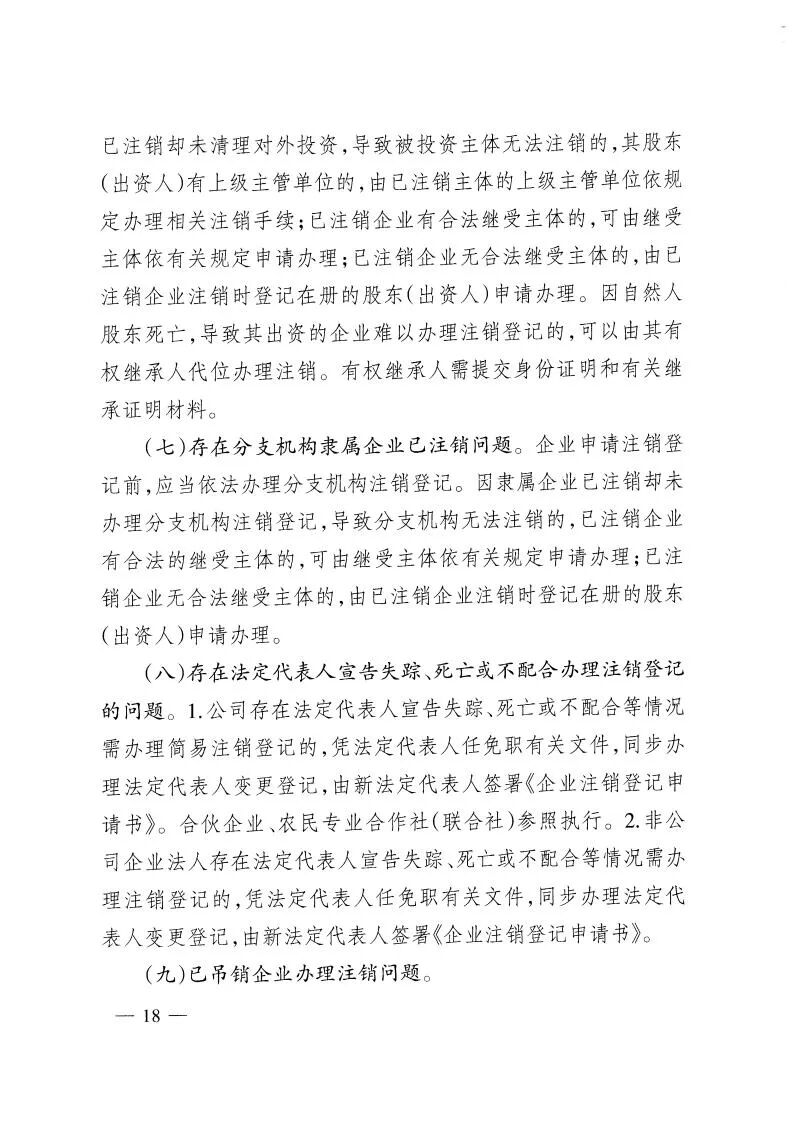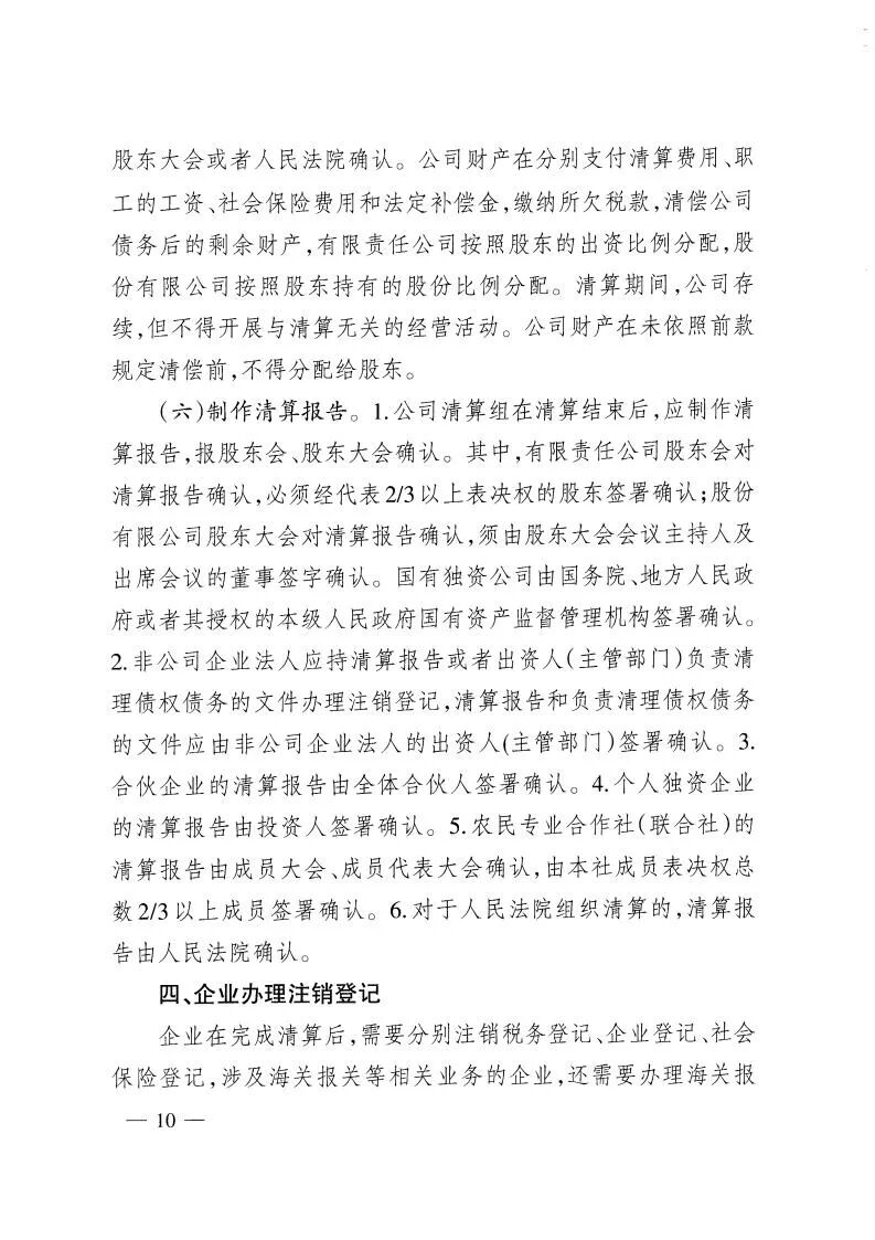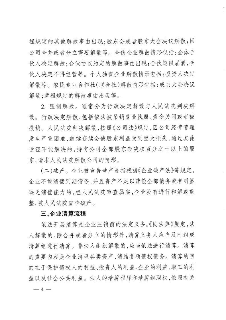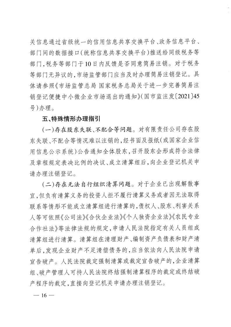 为进一步落实国务院完善企业(含农民专业合作社、个体工商户,下同)退出制度的工作要求,为企业依法退出市场提供操作性更强的行政指导,市场监管总局、海关总署、税务总局依据《中华人民共和国公司法》《市场主体登记管理条例》等法律法规的规定,对《企业注销指引(2021年修订)》进行了修订,现予以公告。