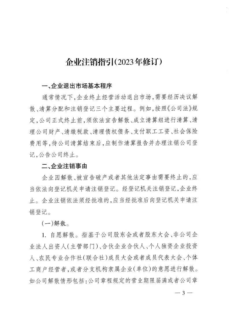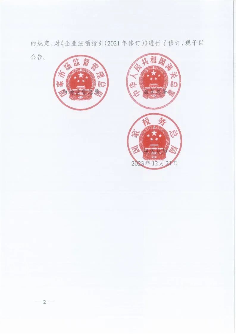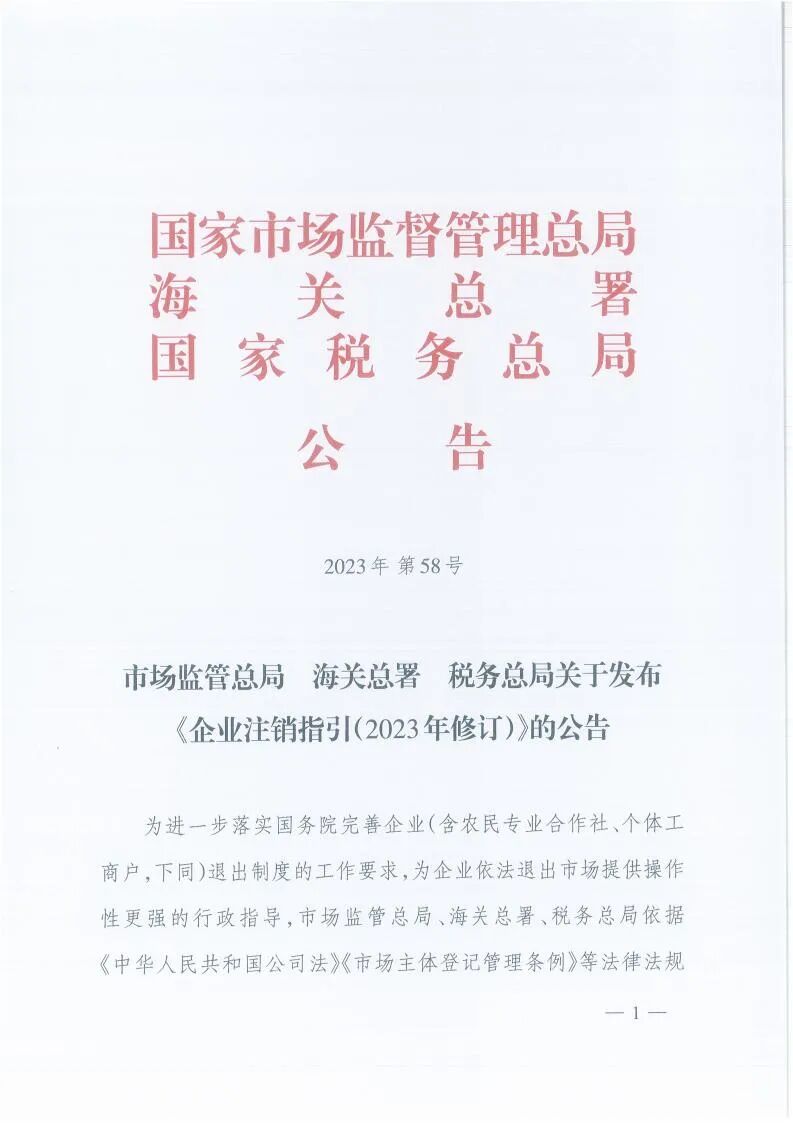 市场监管总局 海关总署 税务总局关于发布《企业注销指引(2023年修订)》的公告
