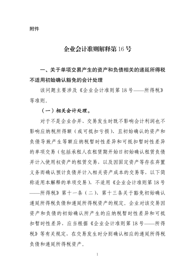 附件:企业会计准则解释第16号