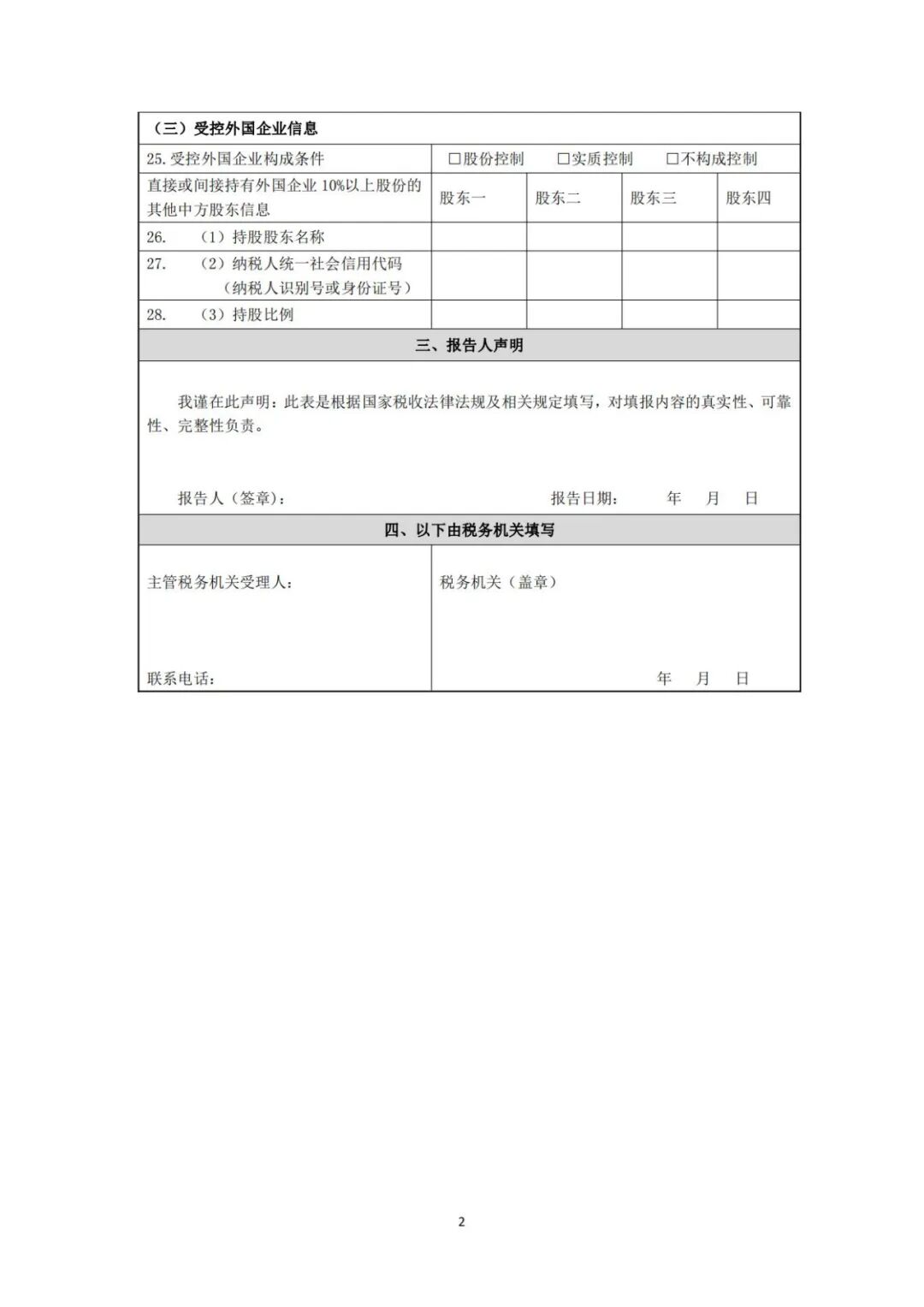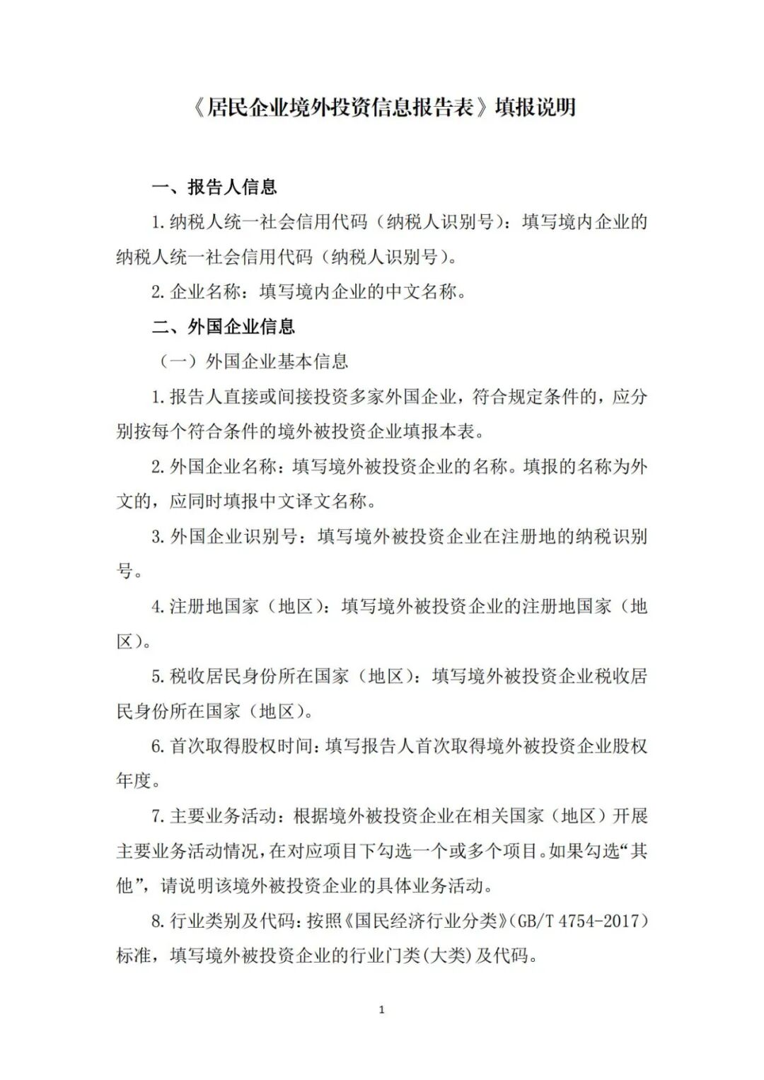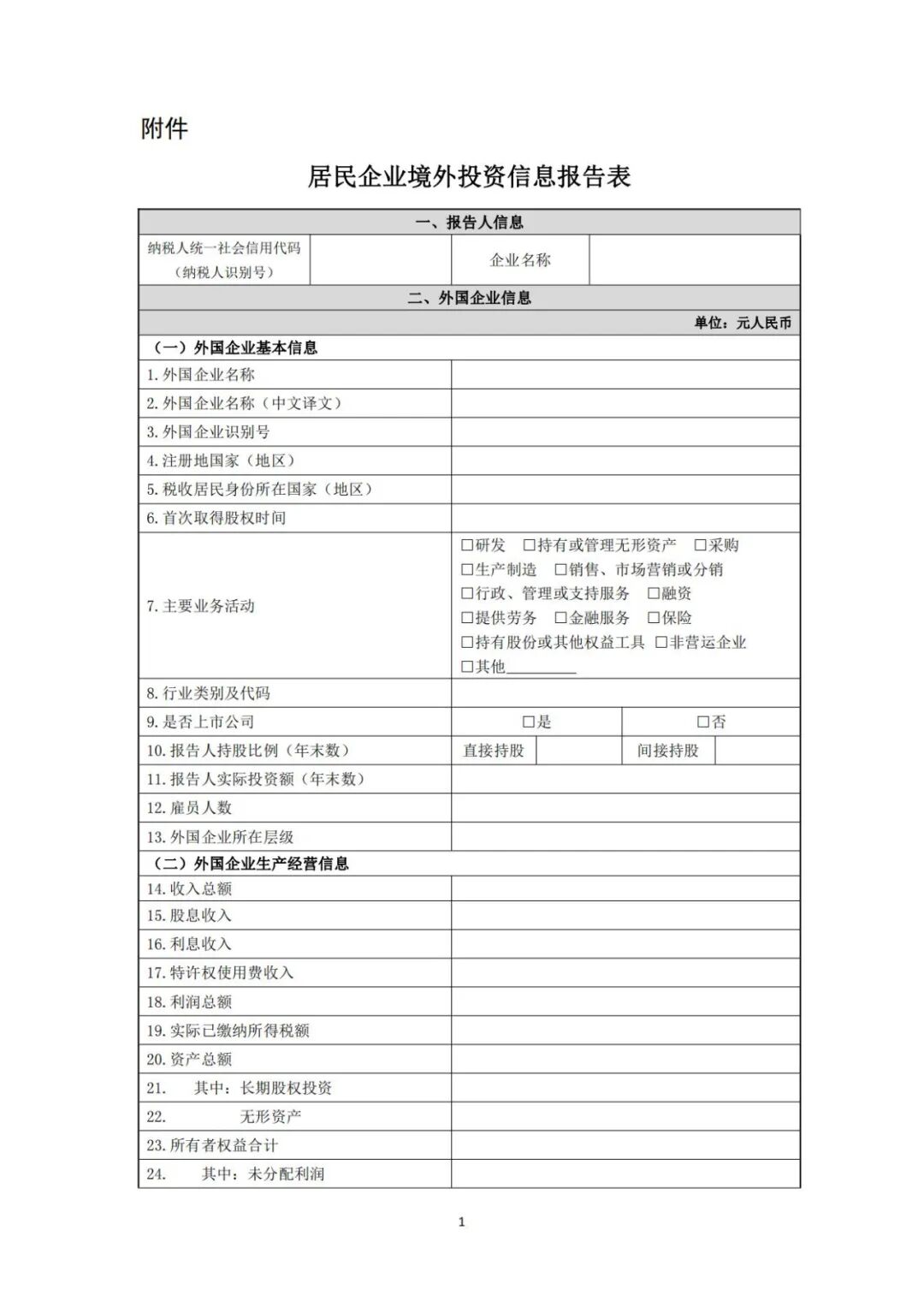 一、居民企业或其通过境内合伙企业,在一个纳税年度中的任何一天,直接或间接持有外国企业股份或有表决权股份达到10%(含)以上的,应当在办理该年度企业所得税年度申报时向主管税务机关报送简并后的《居民企业境外投资信息报告表》(见附件)。